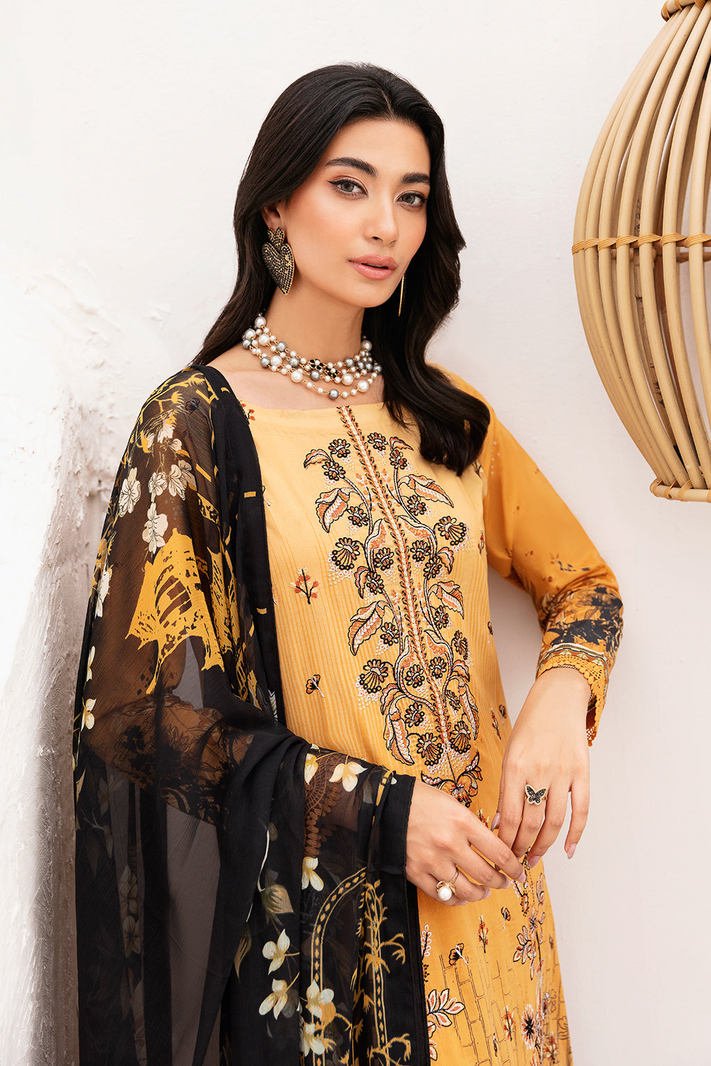 Radiate timeless beauty with this intricately embroidered maroon ensemble, paired with delicate golden accents. Designed to bring sophistication and charm to your festive wardrobe, it’s the perfect blend of tradition and modern style.