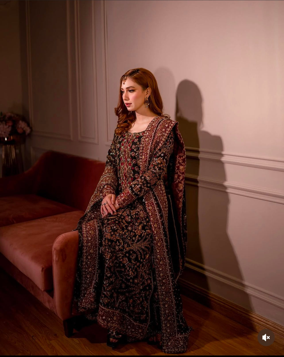 Radiate timeless beauty with this intricately embroidered maroon ensemble, paired with delicate golden accents. Designed to bring sophistication and charm to your festive wardrobe, it’s the perfect blend of tradition and modern style.