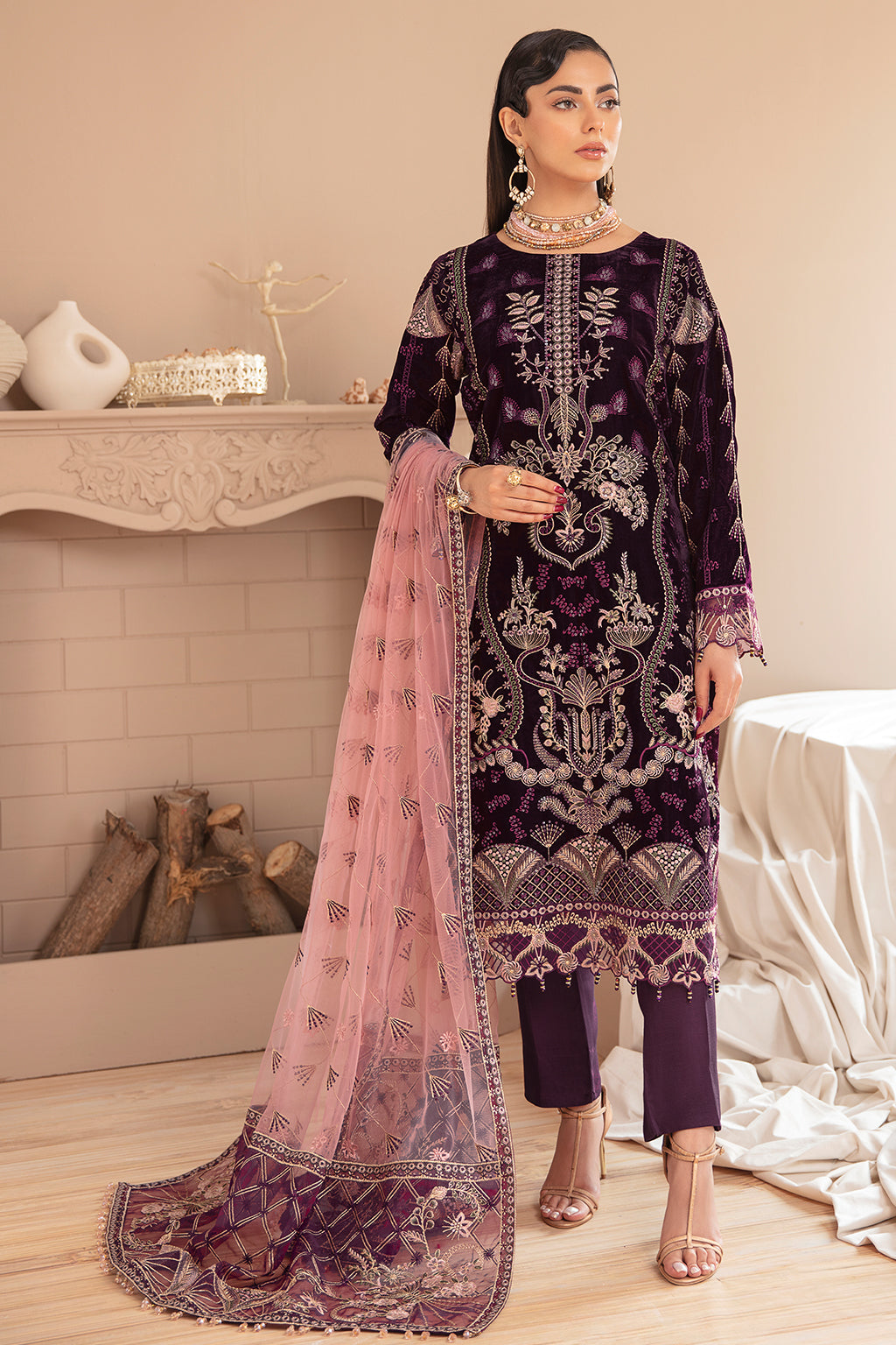 Radiate timeless beauty with this intricately embroidered maroon ensemble, paired with delicate golden accents. Designed to bring sophistication and charm to your festive wardrobe, it’s the perfect blend of tradition and modern style.